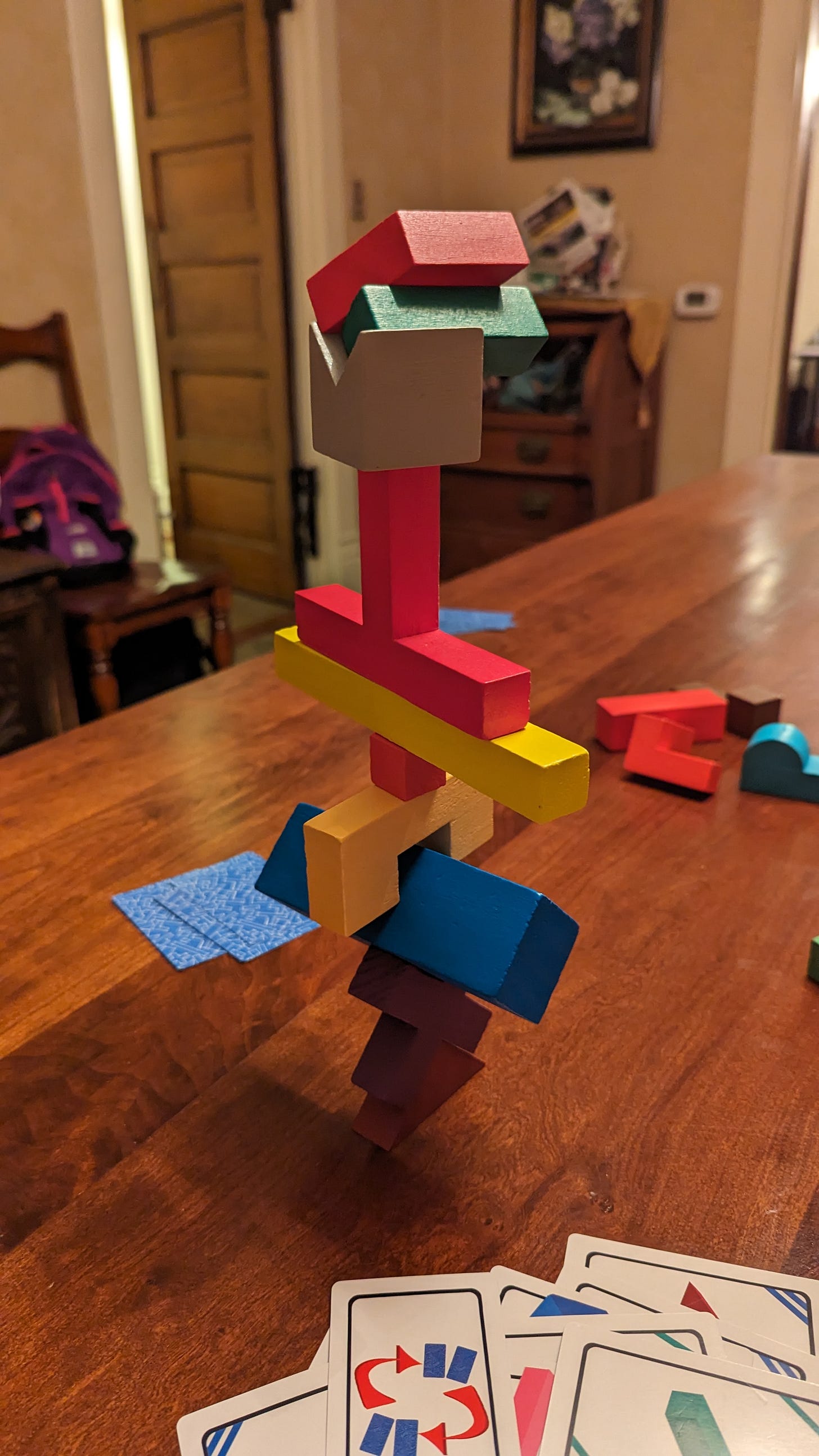 When the kids got home from school, they joined in. I specifically picked up games at the convention that I thought they would play, which is usually a fool’s errand. Getting something I think my daughters will like instantly makes them hate it. This time, though, I hit the mark. My girls were especially fond of a block stacking game where you try to make the tower collapse on someone else’s turn. You basically get to use geometry to be a jerk, which is the only way math will ever be interesting. Unfortunately, Lola and my oldest daughter, Betsy, both have incredibly steady hands and great minds for structural stability. In other words, they’re witches. They might be unbeatable, but I love them anyway. I have to say that so they don’t turn me into a newt. I can’t wait to see what terrifying truths I learn about them next year. Time to start planning Friendscation 4.