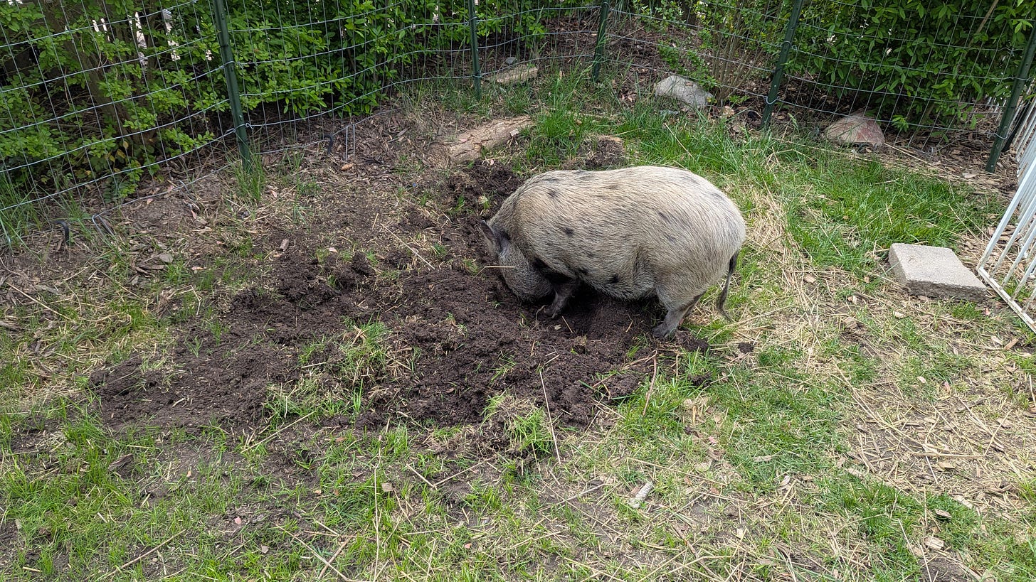 The pigs have been equally unhelpful in getting ready for the party. It’s warm enough outside for grass to grow, which means my annual war on mud has begun. The pigs have done their part to make the yard less of a mess by bringing all of the mud into the house. In general, they really are clean animals. They don’t roll around in the muck. They just walk through it while going about their normal business and track it into the house on their hooves. My tiny backyard is divided into two sections separated by gates. I seeded and watered one side and kept it safe from the pigs until the grass was obnoxiously high. Last week, I let them graze on it so I didn’t have to mow. Then Luna, the smallest and best behaved of the pigs, started digging, destroying the fresh section of lawn. She always roots up the same spot where the elm tree used to be. There must be something down there that smells good. Either that or she’s just bored and strikes where the ground is soft. My beautiful, carefully manicured green space now has a massive hole in it that will soon reach all the way to China. I think I found a workaround for the tariffs. Meanwhile, I’ve reseeded the other side of the yard. In a few weeks, it will be lush and green, at which point I’ll let in the pigs to destroy that half, too. Much like with the inside of the house, keeping the outside in good shape is a losing battle. I need to catch it in that elusive condition where one side or the other looks good for the day of the Triple Birthday Party. The art of hosting is trying to have people over when your house is in that rare transitional state before everything gets destroyed again. That’s why it’s best if all parties are as short as possible.