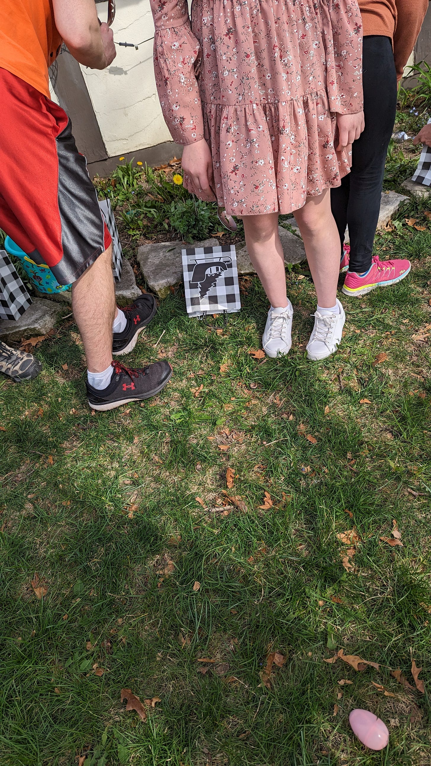 With the historical record preserved, it was time for eggs. We started with the kids. There are so many these days that my parents ran out of individual colors to assign to each one. Actually, the rainbow ran out. The grandkids exceeded the available options in the visible light spectrum. Instead, each kid was given a number that was written on one set of eggs. With the rules explained, my mom unleashed the children. My two youngest, Lucy and Waffle, quickly hoovered up their allotment. As the biggest of the little kids, they reigned supreme. Not that finishing faster helped them. Everyone got the same number of eggs because the communists won. Harry’s kids had the most fun. His toddler, who could barely walk, couldn’t keep his eggs in the basket. Every time one fell out, he thought it was a new egg, which he got to collect all over again. It was an infinite Easter egg hunt. The kid was in heaven.