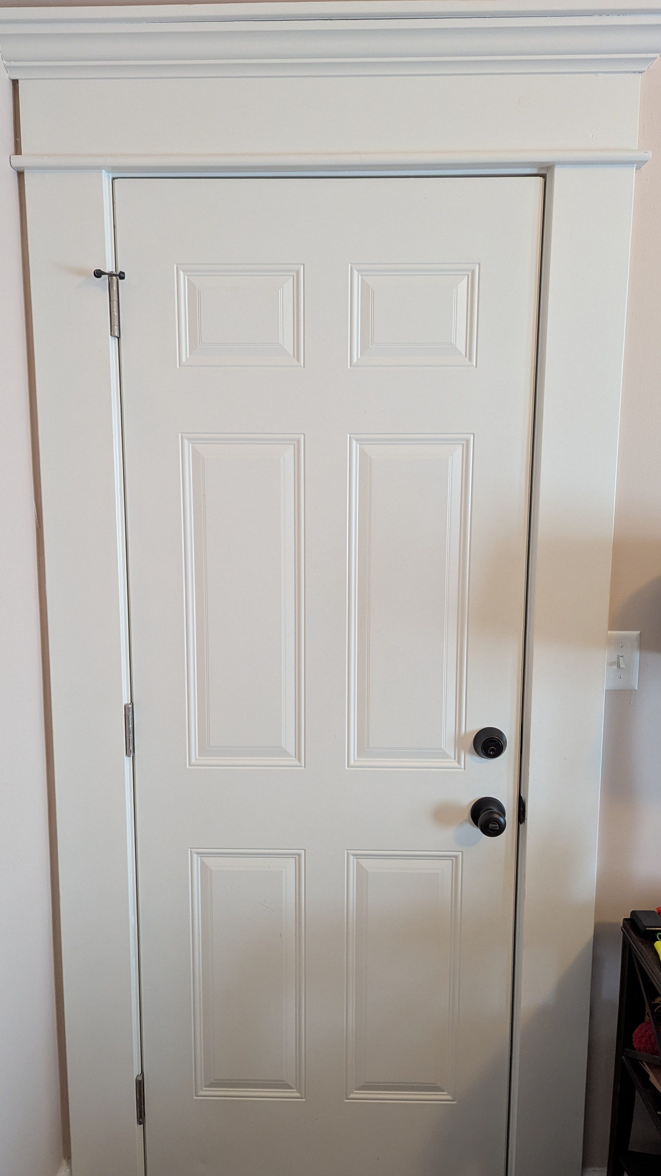 Like all renovations, this one took twice as long and cost twice as much as the initial quote. The final amount was about half the purchase price of the house. Like all contractors, ours had trouble showing up. He completely disappeared by the end, leaving the final five percent or so of the job undone. That was especially egregious when you consider that part of the space was supposed to be left unfinished by design. The new master bedroom and bathroom had both insulation and HVAC support. We splurged for luxuries like keeping our living space livable. That didn’t extend to the closet. It covers a long, L-shaped section on one whole side of the bedroom under the eves. Squeezing the closet into every nook and cranny of that half of the former attic gave us nearly infinite space for clothes but not much room for heads. That doesn’t bother Lola. I have to duck, but she could do jumping jacks in there. The closet is insulated, but it doesn’t have any vents. If we want it to get hot or cold air from the rest of the room, we have to leave one of the closet doors open a crack. Otherwise, before I get dressed, I’ll have to knock down icicles. Who needs cold showers when you have an old house? Just getting out of bed here is extreme.