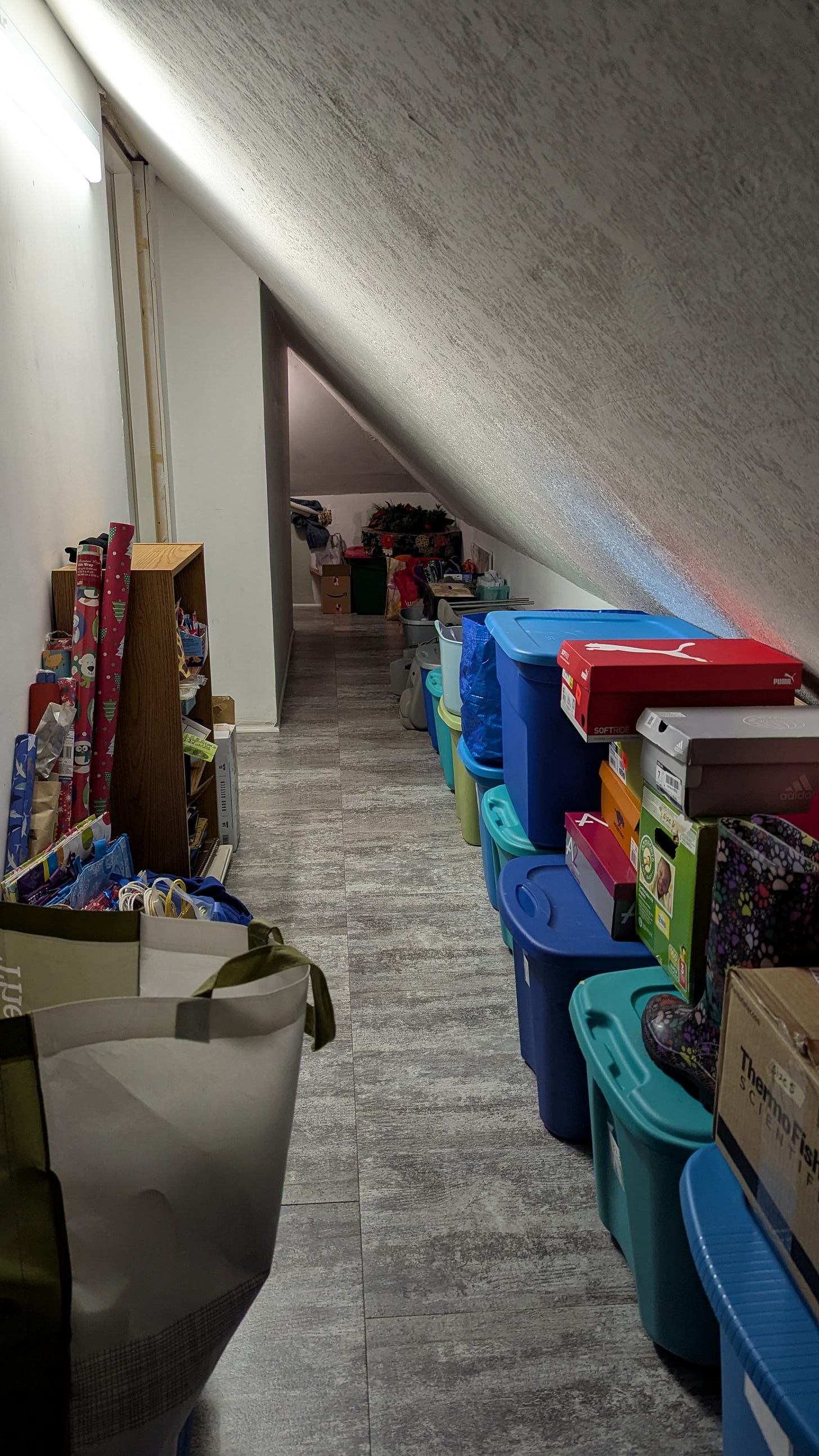 To their credit, the kids got to work. Together with Lola, they went through everything, discarding massive bags of stuff that will now make their way to other families with smaller kids, to second-hand stores, or to a dumpster. It was an unexpected but brutally efficient decluttering that would have made Marie Kondo proud. The best part was it barely involved me. Whatever was left is now back in its attic lair, where it will remain until the next round of surprise cleaning in a decade or two. The next time we go through it in detail, it will likely be to pass down clothes to grandkids—if there are any clothes left. There’s no way to know what’s in there. As soon as I send this email, I’ll once again forget that our attic exists. That steel door in our bedroom will forever conceal a mystery.
