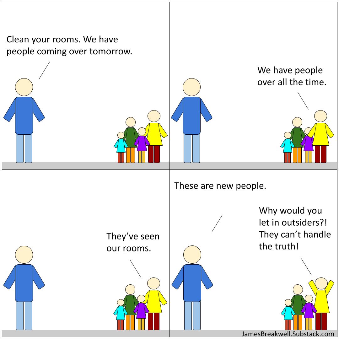 We have people over all the time, but the same people. Tomorrow, new people are coming over. There’s a weird energy in the house. We’re actually cleaning. I won’t make this mistake again.