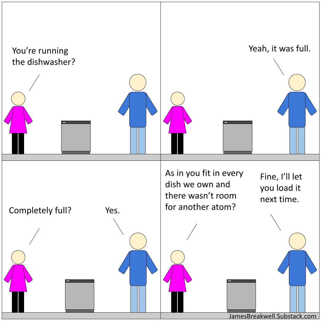 Webcomic: Maximum CapacityJames BreakwellSep 24, 2025∙ Paid2810ShareTo Lola, the dishwasher is a Tardis. It’s bigger on the inside.Continue reading this post for free, courtesy of James Breakwell.Claim my free postOr purchase a paid subscription.PreviousNext