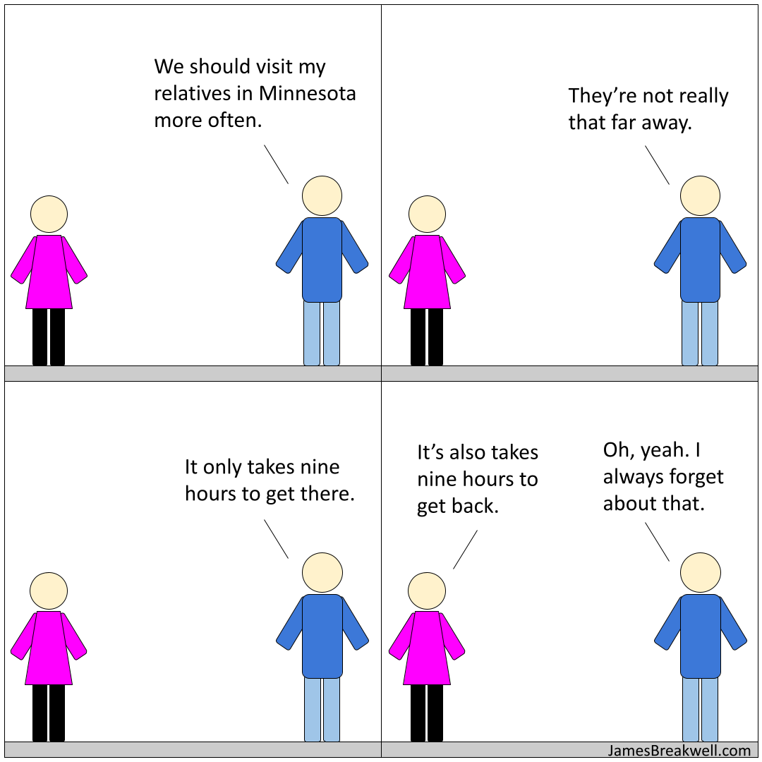 Actually, it took ten hours to get back, courtesy of every kind of traffic disaster imaginable. Thanks, Chicago! The drive to Minneapolis always flies by, but the drive back to Indiana stretches out for an eternity. When I see my relatives for the Fourth of July, I want to show up for all the other major holidays, too. After completing the arduous trip home, however, I never want to get in my van again.