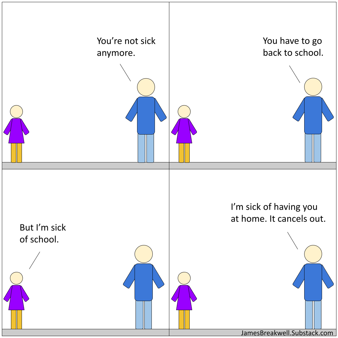 Webcomic: Recovery ThresholdJames BreakwellMar 05, 2025∙ Paid3561ShareIt’s time for the kids to share their germs with someone else. So what if those germs started out with me?Continue reading this post for free, courtesy of James Breakwell.Claim my free postOr purchase a paid subscription.PreviousNext